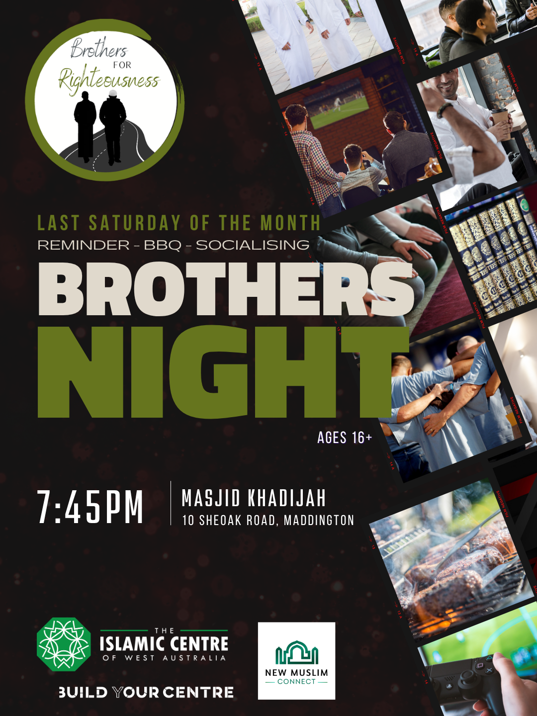 Once a month Saturday evening focused on adult brothers connecting with the masjid and each other.