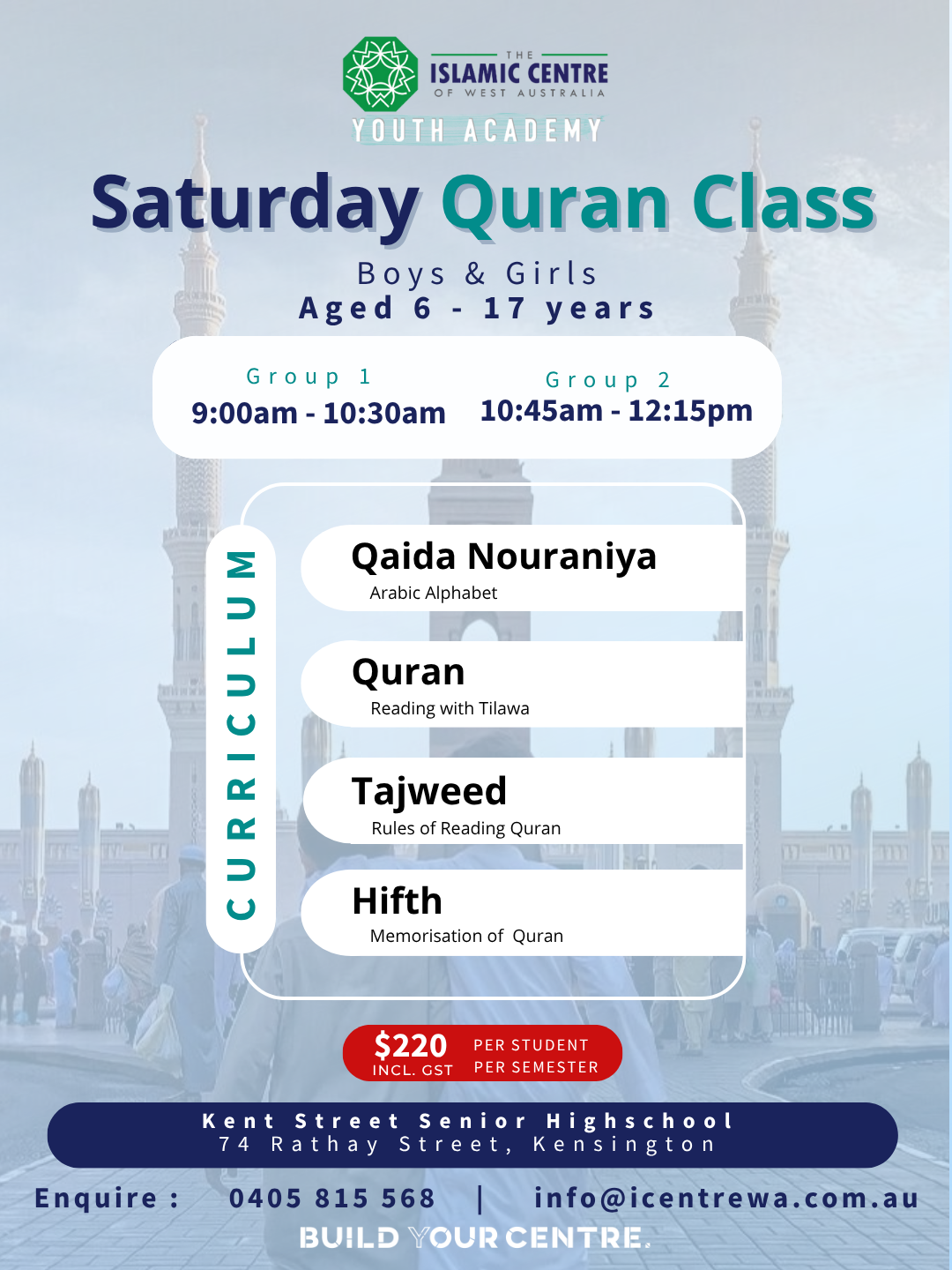 Combining with its existing Quran classes (Al-Hikmah established in 1997), a new SQC structure was implemented under new management by The Islamic Centre of WA.